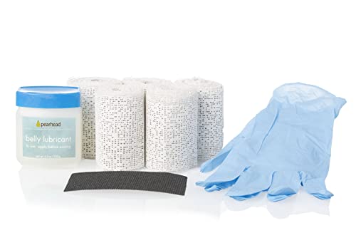 Just me and my bump! Cherish your special pregnancy journey with Pearhead's belly casting kit. This non-toxic, 100% baby safe kit includes everything you need to make a pregnancy keepsake mold of your adorable baby bump. Each belly cast kit includes five rolls of plaster tape, belly casting lubricant, a plastic drop cloth, non-latex gloves, and sanding screen. The easy to follow instructions included walk you through creating your bump mold step by step. Start out by cutting strips from the plaster roll and dipping the strips in warm water, one at a time. Then place each strip onto the casting area. Overlap the strips and apply 3-4 layers to make the mold thick. Wait 5-10 minutes before removing the mold and let dry for a dry. Your belly cast mold will be finished before you know it and will be ready to decorate or display! You can even have some fun with your mold and have friends sign the finished product at your baby shower. Pearhead’s belly casting kit is the perfect gift for any expecting mom and a great way to remember your bump! Product dimensions: 8.875” W x 9.5” H x 3.25” D