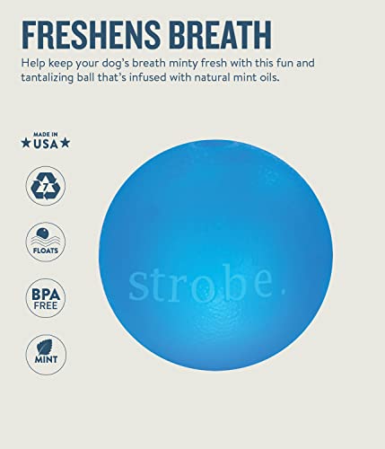The Planet Dog Orbee-Tuff Strobe Ball is a durable and exciting fetch toy your pup won't want to stop playing with! This bright and bouncy ball comes with a battery powered LED light that starts blinking when you bounce it against a hard surface, turning your typical game of fetch into a multi-sensory experience during the day or night! Infused with mint essential oils, this bouncy dog fetch toy will also help keep your pup's teeth clean as they chew and bite. Thoughtfully made in the USA. from Orbee-Tuff TPE material that is BPA, lead, and phthalate-free so you can feel 100% at ease. Available in multiple colors. Clean using warm water and mild soap. Rinse well. WARNING: This product contains a button or coin cell battery. A swallowed button or coin cell battery can cause internal damage or lead to death. Dispose of used batteries immediately. Keep new and used batteries away from children. If you think batteries might have been swallowed seek immediate medical attention. For dogs only. ALWAYS supervise your dog when using a toy of any kind. Inspect toys regularly for damage and remove and replace if broken, or if parts become separated, as serious injury may result. This item is not recommended for dogs that chew heavily.