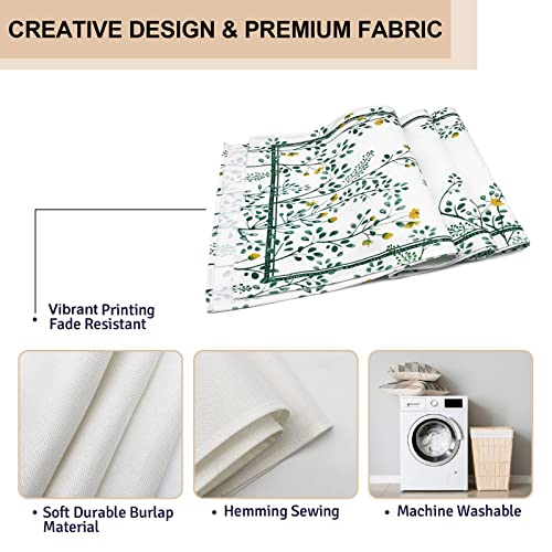 PROCIDA Summer Green Leaf Table Runner Floral Leaves Buflap Table Runners Seasonal Holiday Party Kitchen Indoor Outdoor Dinning Decor 13x108 Inch