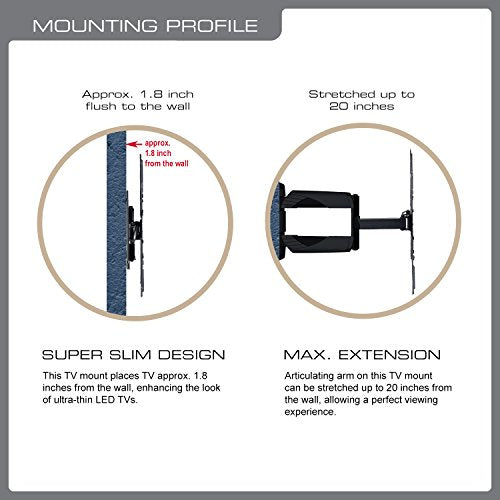 QualGear Qg-TM-A-012 Universal Ultra Slim Low Profile Articulating Wall Mount for 23-55 Inches LED TVs, Black [UL Listed]