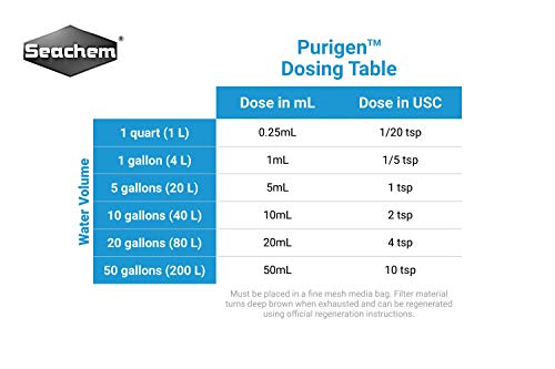 Seachem Purigen is not a mixture of ion exchangers or adsorbents, but a unique macro-porous synthetic polymer that removes soluble and insoluble impurities from water at an excelled rate and capacity.