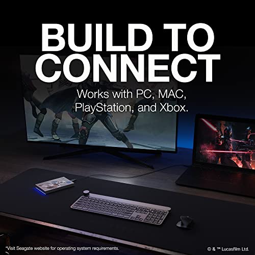 Protect your bounty with the officially licensed The Mandalorian Drive. Featuring blue LED lighting and designed with the unwavering purpose of its hero Din Djarin, this collectible Special Edition FireCuda External Hard Drive is ready for action. And thanks to a huge capacity, you can haul a massive amount of media, files, and games.