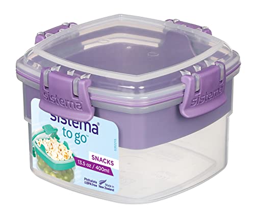 The Sistema To Go Collection Snack Container includes a removable tray and base that keep your snacks separated until you are ready to eat. This lunch container has a lid with a flexible inner seal and easy-locking clips to help keep your food fresh. Made from 100% virgin plastic, this BPA- and phthalate-free food storage container is dishwasher-safe when placed on the top rack, microwave-safe without the lid, and safe for storing in fridges and freezers.