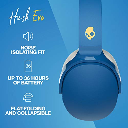 Skullcandy Hesh Evo Bluetooth Headphones for iPhone and Android with Microphone / 36 Hours Battery Life / Great for Music, School, Travel and Gaming / Wireless Headphones - 92 Blue