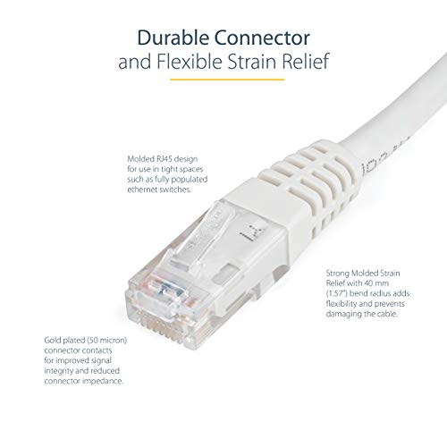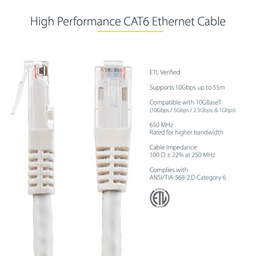 StarTech.com 8ft CAT6 Ethernet Cable - White CAT 6 Gigabit Ethernet Wire -650MHz 100W PoE++ RJ45 UTP Molded Category 6 Network/Patch Cord w/Strain Relief/Fluke Tested UL/TIA Certified (C6PATCH8WH)