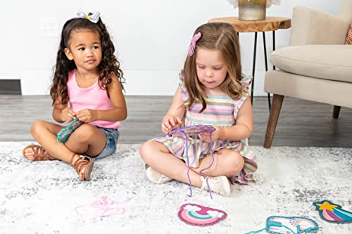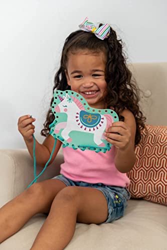 So much fun for a toddler! Each Lacing Set includes five themed cards and five coordinating strings; a zipper pouch is included for easy storage. The Lacing Card set helps the little ones to train their hand-eye coordination and color matching.