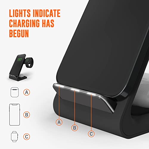 STM ChargeTree Swing - 3-in-1 Wireless Charging Station for iPhone/Samsung/Android (15W/7.5W), AirPods (5W), Apple Watch (3W) - Qi Certified Charging Stand - Black (stm-931-323Z-02)