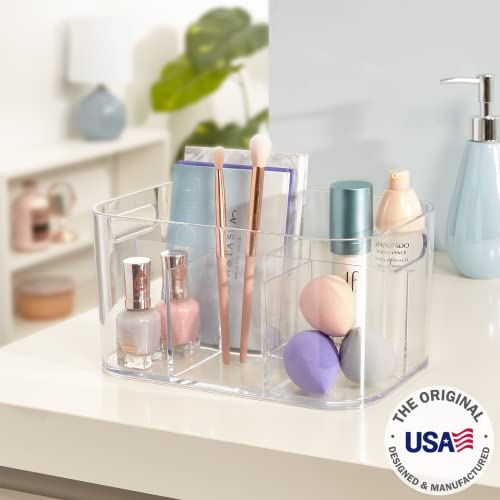 STORi Bliss 5-Compartment Plastic Cosmetic Organizer | Clear | Rectangular Divided Makeup Bin and Vanity Storage Caddy with Pass-Through Handles | Round Corner Design | Made in USA