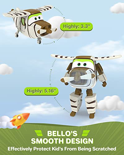 Super Wings 5' Transforming Bello Airplane Toys, Safe and Durable Vehicle Action Figure, Superwings Transforming Plane to Robot, Fun Preschool Toy Planes, Gifts Toys for Kids Aged 3 and Up, Stripes