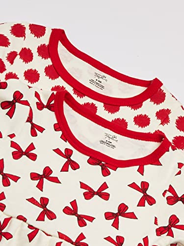 Touched by Nature Girls, Toddler, Baby and Womens Organic Cotton Short-Sleeve and Long-Sleeve Dresses, Bows Long Sleeve, 6-9 Months