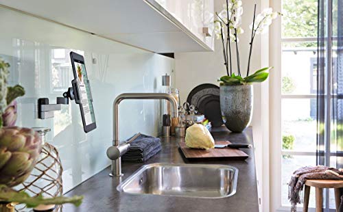 Always Ready to Give You a Hand At Vogel's, we love to use our tablet in the kitchen while cooking a meal. So, for maximum enjoyment, our designers drew upon their experience to create sturdy, flexible tablet holders and tablet mounts that fix tablets securely to walls. It won't take up counter space and will keep your tablet safe from splatters. A Tablet Holder that fits All Tablet Brands The stylishly designed Vogel's tablet holder fits all tablets from 7-13 inches in length (including iPad Pro) with a thickness of 0.2-0.5 inches (0.5-1.3 cm).The Tablet Flex Pack comes with a tablet holder and a flexible tablet mount, which is everything you need to use your tablet in the kitchen. Your Tablet at the Right Height Our tablet wall mount easily attaches your tablet to the wall, cupboard or other handy spot where it's easy to see. Just clip the Vogel's holder to any tablet and snap it onto the stylish mount with our innovative RingO technology. The flexible arm lets you extend, rotate and tilt your tablet into the perfect viewing position. Now you can look up recipes, watch a cooking tutorial or even your favourite TV programme while in the kitchen.