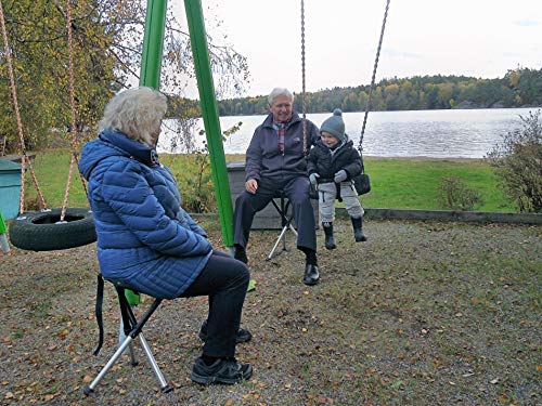 Walkstool - Comfort Model - Black and Silver - 3 Legged Folding Stool in Aluminium - Height 18' to 30' - Maximum Load 440 to 550 Lbs - Made in Sweden