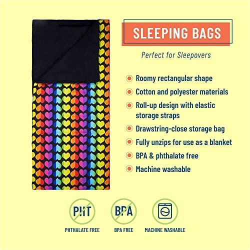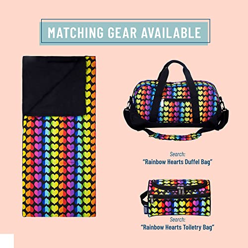 Wildkin Kids Sleeping Bags for Boys and Girls, Measures 66 x 30 x 1.5 Inches, Cotton Blend Materials Sleeping Bag for Kids, Ideal Size for Parties, Camping and Overnight Travel (Rainbow Hearts)