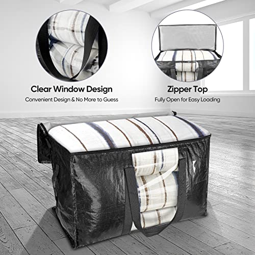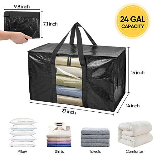 BALEINE 6 Pack Extra Large Moving Bags with Clear Window, Heavy-Duty Storage Tote for Dorm Storage Space Saving (Black, 6 Pack)