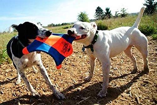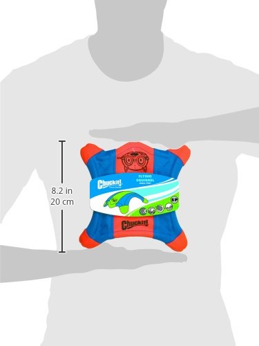 Chuckit's Flying Squirrel toy is an aerodynamic, visually exciting alternative to the traditional frisbee. This Chuckit! frisbee for dogs features four, bright orange "paws" that are eye-catching during the day and glow in the dark at night. By flinging the Flying Squirrel by the "paw," pet parents can send the toy soaring and engage pets in a thrilling game of fetch. These tough dog toys are made of a durable canvas material to withstand rugged play, while its soft, curved sides are gently on dogs' mouths. Ideal for water-loving dogs, the Chuckit! Flying Squirrel doubles as a dog float toy for fetch at the lake or the beach. With a brightly colored design, pets and pet parents will never lose sight of the Flying Squirrel on land or water. Dogs large and small can enjoy fetch with the Chuckit! Flying Squirrel, available in small, medium, and large sizes.