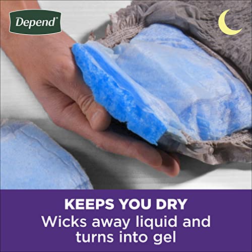 Sleep through the night with Depend Night Defense Adult Incontinence Underwear for Men with Overnight Absorbency, providing up to 12 hours of protection. Available in a classic grey color, this disposable underwear is ideal for bladder incontinence for nighttime use, featuring a super absorbent core which absorbs 25x its weight and turns liquid into gel, neutralizing odors and locking wetness in place. Depend’s improved liner is 2x drier than before and helps keep you dry all night by wicking wetness away from your skin. Depend Night Defense for Men provides a discreet fit, soft and smooth fabric, and a high-performance waistband that helps keep underwear securely in place and helps you sleep worry-free. Depend Night Defense incontinence underwear for men is available in three sizes: size small/medium (26–34" waist), size large (35–43" waist) and size extra-large (44–54" waist). Packaging may vary from images shown. Some more good news: This product is HSA/FSA-eligible in the U.S.