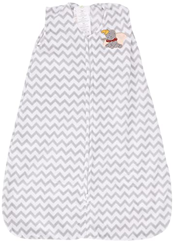 A wearable blanket the replaces loose blankets during sleeptime, the Disney Dumbo Wearable blanket comes in two sizes Small and Medium. For use over regular sleepware. Features an inverted full-length zipper for easy on/off and diaper changes. Made from soft printed microfleece fabric, with a Dumbo embroidery detail.