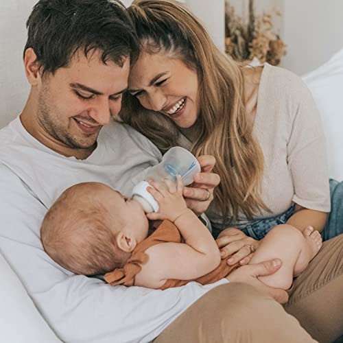 Your options have never been better with Dr. Brown’s Natural Flow® Anti-Colic Options+™ Wide-Neck Baby Bottle Newborn Gift Set. The anti-colic internal vent system is clinically proven to reduce colic. Dr. Brown’s bottles provide a more comfortable feeding experience for baby by decreasing spit-up, burping and gas. This vacuum-free feeding is closest to breastfeeding and Dr. Brown’s silicone nipples provide a consistent flow so baby can feed at their own pace. The breast-like nipple shape encourages a proper latch for a more natural bottle feeding experience and eases the transition from breast to bottle and back again. Dr. Brown’s vent system is proven to help preserve bottle milk nutrients and aids in digestion for a better night’s sleep. The silicone nipple, together with the internal vent system, offer a reliable and trusted bottle feeding experience that makes Dr. Brown’s the #1 Pediatrician Recommended Baby Bottle in the U.S.* Made to grow with baby, our bottle is designed to nourish through all of baby’s feeding stages and is recyclable. Safe for use in dishwasher (top rack only), electric and microwave sterilizers or boiling water. BPA Free. *IQVIA Health ProVoice Survey 2022