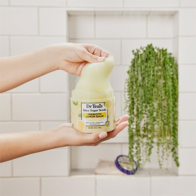 Dr Teal's Shea Sugar Body Scrub with Prebiotic Lemon Balm and Essential Oils, 19 oz