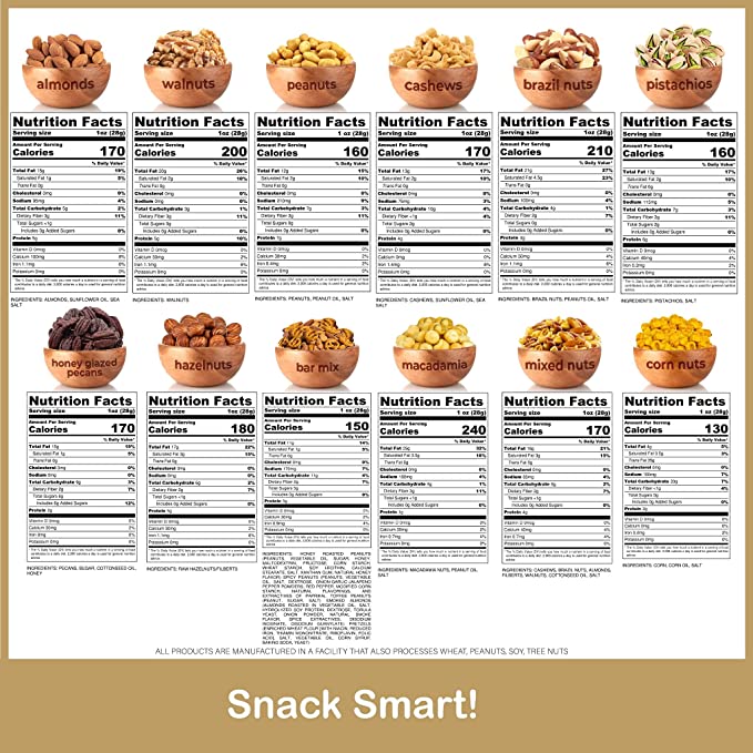 • A SELECTION OF 12 OF OUR BEST NUTS: Our Nuts Mix Wooden Tray includes a handful of 12 of our signature nuts: Brazil Nuts, Almonds, Pistachios, Peanuts, Cashews, Honey Glazed Pecans, Hazelnuts, Walnuts, Pretzel Bar Snack Mix, Salted Peanuts, Mixed Nuts, and more!