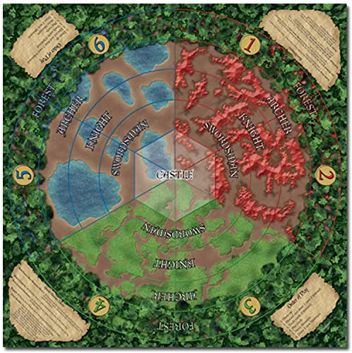 In Castle Panic players must work together to defend their castle, in the center of the board, from monsters that attack out of the forest, at the edges of the board. Players trade cards, hit and slay monsters, and plan strategies together to keep their castle towers intact. The players either win or lose together, but only the player with the most victory points is declared the Master Slayer.