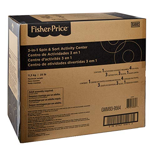 The Fisher-Price 3-in-1 Spin & Sort Activity Center keeps playtime going as your baby grows from infant to toddler! It starts as a sit-in infant entertainer with a spinning seat and moveable activity pods for 360 degrees of hands-on play. Then, as your baby grows, you can snap the activity pods to the shape-sorter plate, so your baby can explore as they sit up on the floor. And when your toddler is ready to stand up and walk around, swap out the seat for the shape-sorter plate and the activity center becomes a toddler play table! This convertible activity center is loaded with customizable play to keep your growing explorer entertained day after day.Where development comes into playMovement & Motion: As your baby grows from spinning around, to sitting up on their own, and standing up to cruise around, their gross motor skills keep going and growing!Sensory: A variety of textures, bright colors, and fun rattle sounds engage your baby's tactile, visual, and auditory senses.Curiosity & Wonder: As little ones explore all the fun activities, including the shape sorter center, they're introduced to trial & error and sorting & classifying as they work to figure out how to place the shapes into their perfect spots!