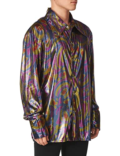 Forum Novelties Men's 70's Disco Dynamite Dude Costume Shirt, Purple/Gold/Blue, Standard