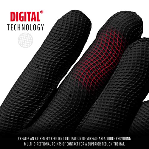 Franklin Sports MLB Digitek Baseball Batting Gloves - Black/Black Digi - Adult Small