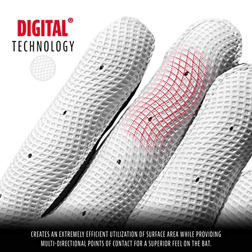Whether it’s batting practice or the playoffs, your baseball player needs a solid set of gloves that can handle everything the game throws at them without bulkiness. Franklin’s MLB Digitek Batting Glove is a flexible, multi-functional batting glove with an athletic fit, feel, and look. It’s the ideal adult and youth batting glove, providing protection and a state-of-the-art grip. With multiple sizes available, you can find the ideal fit for your MVP. When it comes to batting, gloves are crucial to prevent sweaty hands from losing their grip on the bat. We’ve designed the Digitek Series with a digitally-etched microfiber material for a superior grip that lets you feel every swing and connection with the ball. The durability of genuine leather connects with the microfiber cloth for a hybrid construction that gives you targeted strength and sensitivity exactly where you need it for peak performance. Also, our tri-curve technology proviWe des a perfect fit that molds to your hand. Each pair of Franklin Adult and Youth Batting Gloves fits snugly against the skin, so the hands can still flex and feel as perfectly as if they were bare. Most importantly, you get top-notch flexibility that keeps your grip on the bat firm. Multiple color options let you assert your personality, and a touch of camo print on the side of each glove adds a bit of flair. Our wide variety of sizes allows you to find the perfect fit, making the Digitek Series the ideal choice for young, constantly-growing ball players. With Franklin batting gloves, adolescents are ready for their moment at the plate. Each set of Franklin Sports Digitek Batting Gloves comes with a quality-sewn pair in the size and color of your choice.