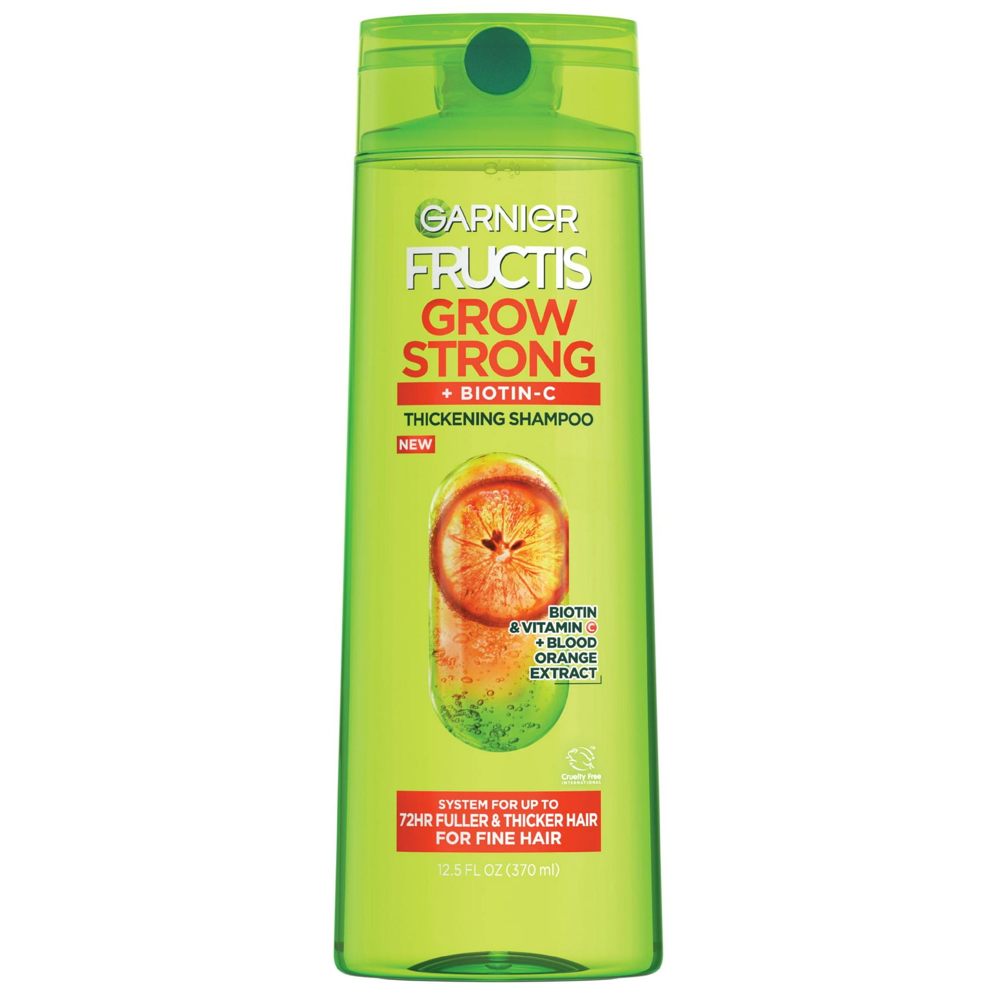 Garnier Fructis Grow Strong Thickening Shampoo with Biotin, Get up to 72HR fuller thicker looking hair with Garnier Fructis Grow Strong Thickening system of shampoo, conditioner, and leave-in treatment, formulated with Biotin And Vitamin C + Blood Orange Extract. No parabens, no silicones, no phthalates, and no DMDM Hydantoin. COMMITTED TO MAKING GARNIER A GREENER BEAUTY BRAND: As a leading global beauty brand, we aspire to create a positive impact by paving the way towards more and more sustainable beauty that's accessible to all of us. Additionally, all Garnier products, globally, are officially approved by Cruelty Free International under the Leaping Bunny Program.