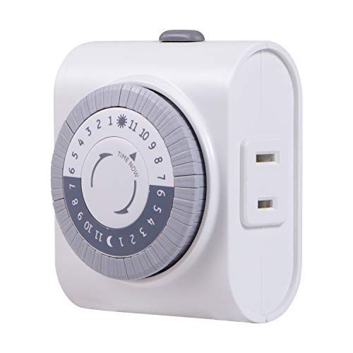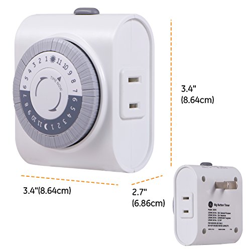 The 24-hour mechanical timer is perfect for lamps, seasonal and portable fans.