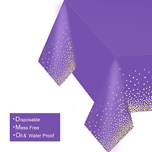 Gexolenu 2 Pack Premium Purple and Gold Disposable Plastic Tablecloth for Rectangle Tables(54' x 108'), Disposable Waterproof Table Cover for Birthday, Graduation, Gold Table Cloths Party Supplies