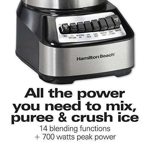 Hamilton Beach Wave Crusher Blender with 40 Oz Glass Jar and 14 Functions for Puree, Ice Crush, Shakes and Smoothies, Stainless Steel (54221)