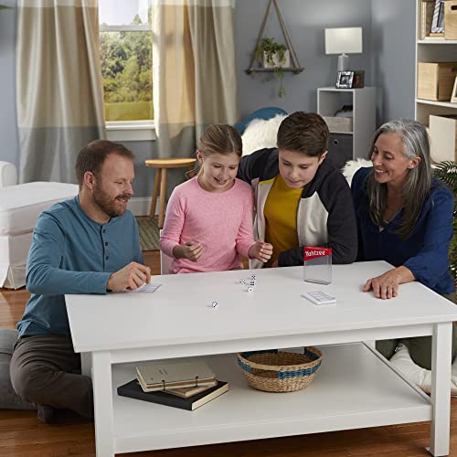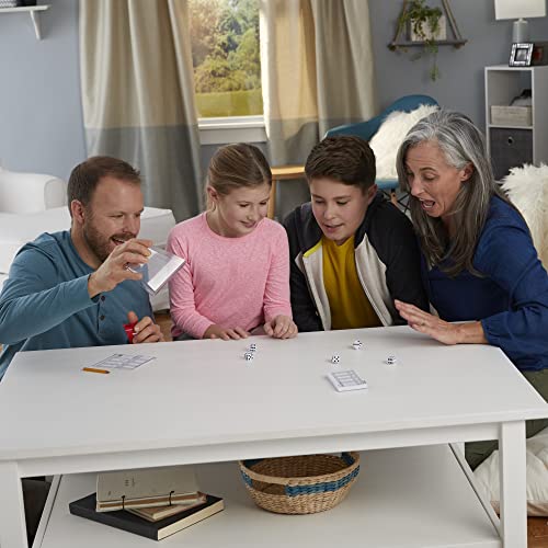 Roll it to the limit for the ultimate win with the Yahtzee Classic game. With a sleek shaker and 5 dice, you're ready to roll! Take turns rolling dice to try to score combos. You get a total of 13 turns and may roll up to three times on a turn. At the end of each turn, you must fill in one empty box in your column on the score card. The player with the highest grand total at the end of all 13 rounds wins. It's up to the player whether they hustle for a full house or risk it all for a Yahtzee roll. Show it off, and let the dice fall where they may. Game includes 5 dice and shaker that doubles as storage for easy clean up and travel. Yahtzee is a trademark of Hasbro.