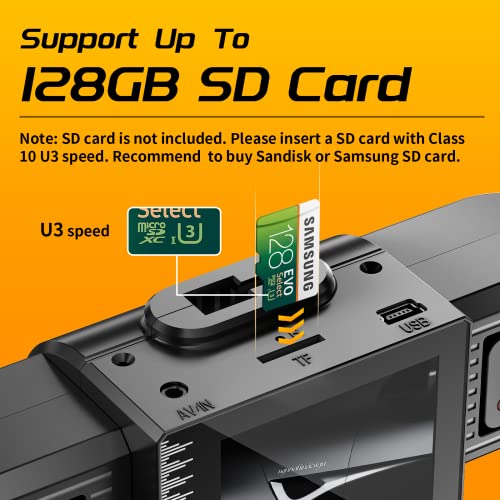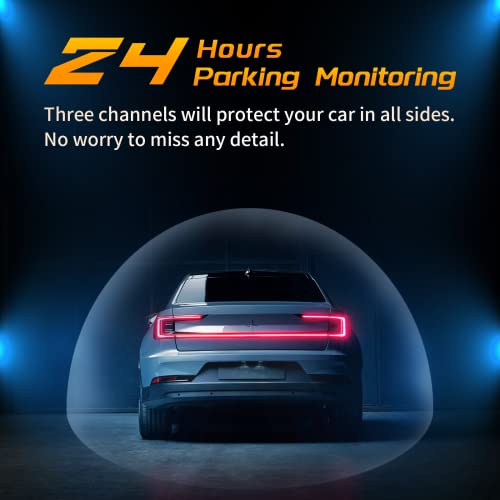 【Adjustable Triple Lens】T1-pro dash cam provides three channels recording simultaneously. Thanks to the switchable lens, three lens can be used to record “front inside and rear” OR “left right and rear”, which can be chosen by yourself. Both left and right channels have 170°wide degree, all of the details being captured plus the 140°rear camera.,【Superior Night Vision with 8 IR Lamp】The left and right camera both has 4 IR lamps. Equipped with F1.8 aperture and Upgraded sensor, dash cam can ensure super clear image at night. Even it’s totally dark, it will show the image (In black and white mode). Protect your car at any time. A good choice for Uber, Taxi driver,【Dual 1080P with Upgraded Sensor】Upgraded Novatek chipset and Upgraded Sensor, which can support the videos record 1080P left + 1080P right + VGA rear simultaneously. 3 videos will display on the screen at the same time, providing the whole views around the car.,【Loop-recording and Auto Lock Collision Videos】The dash cam will simultaneously record, the newest video will replace the oldest one(Locked video will not be replaced). Built in G-sensor function, the dash cam can lock the video automatically when there is an emergency situation (Like collision or crash). Also, you can lock the videos manually if you think it’s important.,【Brilliant Parking Monitoring】When you park the car, the camera lens can adjust to left and right view. It will provide the side view of car, no worry your car will be scratched on the side. The dash cam automatically powers on (Three cameras will turn on together) and starts recording, thus providing you a video evidence if your car is scratched by someone in parking. We recommend to use the hard wire kit (Asin: B07Q29JZZY) installing your dash cam to make the dash cam 24 hours working for you.,【Note】T1-pro dash cam supports 32GB-128GB SD card. The SD card needs to purchase separately. Recommend to buy Class 10 U3 speed memory card. The rear camera is 6 meters long, which can fit for most of the cars, if you have a long car, then you can buy the extension cable(asin:B091C5K47J),【Worry-Free After Sale】We provide 12 months warranty and 30 days money back. If you have any questions regarding your product, please do not hesitate to contact us at customer care email, or drop us a message through the message chat box in amazon, we will respond immediately.