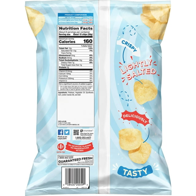 Lay's Potato Chips, Lightly Salted Classic Flavor, 7.75 oz Bag
