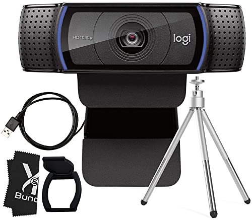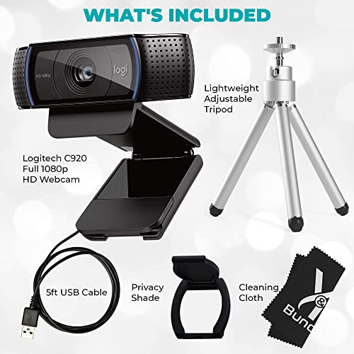 Logitech Webcam C920 HD Pro Bundle with Tripod, Privacy Shutter and Cleaning Cloth - Privacy Cover Computer Webcam Microphone - 1080p Streaming Wide Angle Video Camera - 1080P Desktop Web Camera