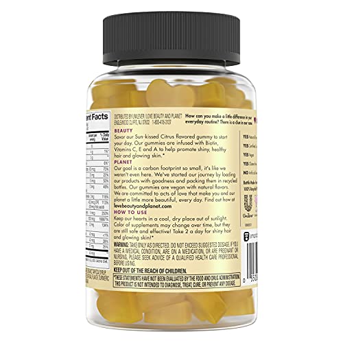 Love Beauty and Planet Citrus Crush Gummy Vitamins Flavored Hair Vitamins for Radiant Hair and Glowing Skin Multi-Benefit Vegan Dietary Supplement Gluten-Free, Cruelty-Free 60 Count