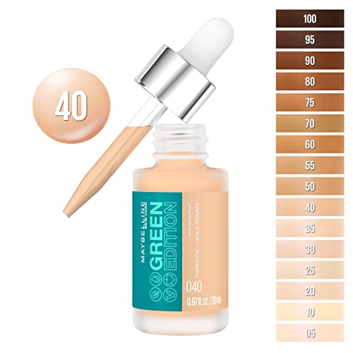 Maybelline Green Edition Superdrop Tinted Oil Base Makeup, Adjustable Natural Coverage Foundation Formulated With Jojoba and Marula Oil, 40, 1 Count