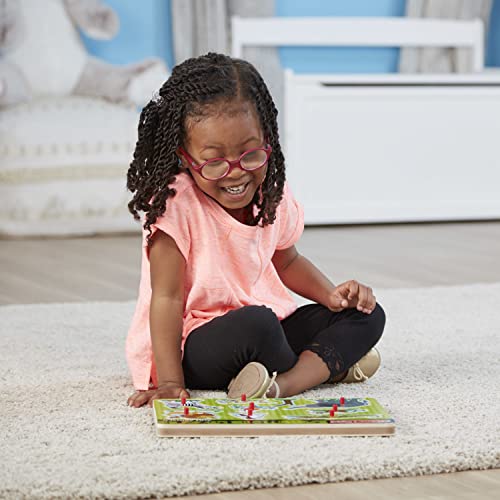 Listen to the voices of eight favorite zoo animals when the puzzle pieces are correctly placed in the puzzle board! Each animal piece has a matching full-color picture beneath. Eye- and ear-catching puzzle enhances matching and listening skills. (TIP: Puzzle has light-activated sensors; for best results, expose the sensor by removing a piece in a brightly lit room, then make the sound play by replacing the piece in the board.) The Melissa & Doug Zoo Animals Sound Puzzle helps teach matching and listening skills as well as manual dexterity. Peg pieces are sturdy and easy to grab. This puzzle is an exceptional gift for kids ages 2 to 4 years. Add the Melissa & Doug Old MacDonald's Farm Sound Puzzle for extra hands-on farmyard fun and to give kids an engaging option for screen-free fun. For more than 30 years, Melissa & Doug has created beautifully designed imagination- and creativity-sparking products that NBC News called “the gold standard in early childhood play.” Today, Melissa & Doug is proudly partnering with the American Academy of Pediatrics to foster early brain development and help children build important life skills through play.