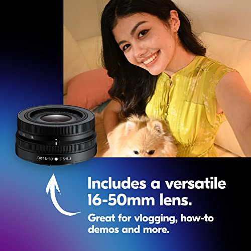 Move beyond the smartphone camera vibe and take your video quality to the next level. The Nikon Z 30 mirrorless 4K digital camera with a 16-50mm lens is a user-friendly upgrade with a cinematic look and feel, spectacular video quality and features designed for creators, vloggers, influencers, and streamers. TechRadar rated it a Best Camera For Vlogging, calling it “A compact and intuitive tool for novice vloggers.” The Z 30 is the smallest camera in Nikon’s Z series, so it’s easy to use handheld or on a tabletop tripod. It has a flip-out screen with touchscreen control to ensure you’re always in frame, along with a convenient smartphone app that lets you control the camera remotely. The included NIKKOR Z DX 16-50mm f/3.5-6.3 VR wide-angle zoom lens has powerful image stabilization to keep your shots steady. Fast, reliable autofocus with several AF Modes can adjust to the quick shifts in detail found in unboxing videos, how-to’s, gaming streams, video tours, and tutorials. Plus, with eye-detection autofocus, the Z 30 can automatically track the eyes and faces of humans, cats or dogs and keep focus right where you want it. If the Z 30 is your entryway into Nikon Z series products, rest assured you can upgrade your lenses or add an external mic along the way to boost the quality of your content. And to help you make that step, Nikon also offers a Creator’s Accessory Kit with tripod, microphone, and remote (sold separately). When you buy from a Nikon Authorized Dealer, you also get the peace of mind of a limited one-year warranty from Nikon Inc.