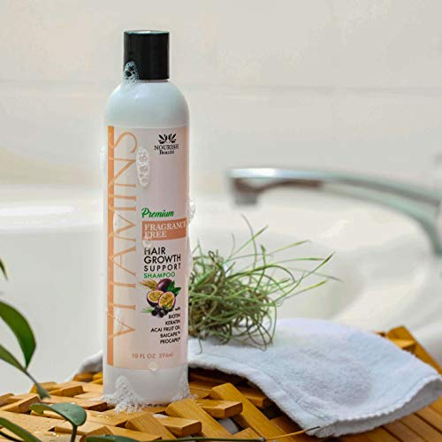 Nourish Beaute Vitamins Premium Shampoo for Hair Loss to Promote Hair Regrowth, Volume and Thickening with Biotin, DHT Blockers and Antioxidants for Men and Women 10 Ounces, Fragrance Free, 1 Count