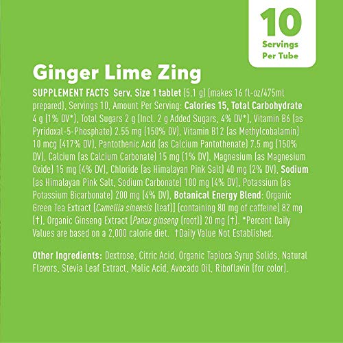 Nuun Energy: Electrolyte Drink Tablets, Caffeine, B Vitamins, Ginseng, Ginger Lime Zing, 80 Servings