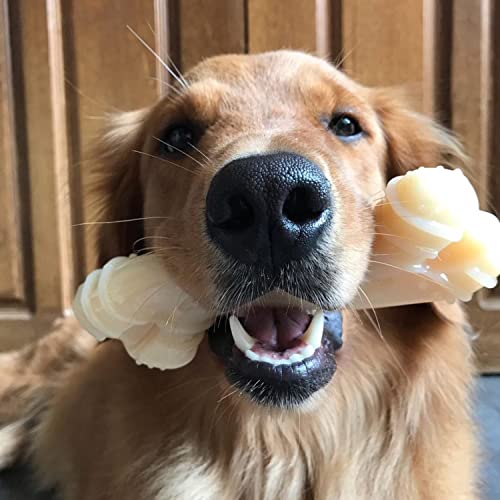 Keep your dog busy, happy, and satisfied with our Power Chew Curvy Bone! Designed for the most aggressive chewers, this sturdy nylon dog chew toy stands up to your powerful pup and encourages healthy, non-destructive chewing habits. The dental ridges and nubs help reduce plaque and tartar through mechanical action, helping your dog maintain proper oral hygiene while chewing. Our curvy, ergonomic design makes this giant chew toy easy to hold, so your furry friend can enjoy chew time more comfortably. Speaking of enjoyment, dogs can't resist the delicious allergen-free peanut butter flavor throughout the bone. This large dog chew toy is proudly made in the USA and is intended for dogs up to 50 pounds.