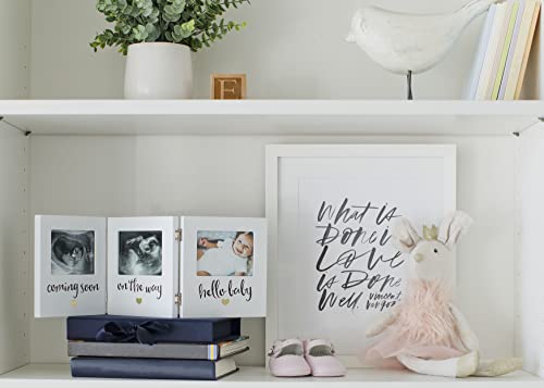 Pearhead Triple Sonogram Keepsake Photo Frame, Baby Ultrasound Tabletop Picture Frame, Gender-Neutral Baby Nursery Décor, Pregnancy to Newborn Photo Frame, White