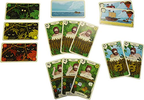Friday is a solo adventure - only you can win the game. You are helping Robinson, who came ashore on your island, fight against many hazards. At the beginning, Robinson is not very skillful. With each fight he wins you will improve his abilities, but defeats are also helping to get rid off of his worse habits. However, life on the island is energy-sapping, so that Robinson not only gains experiences during his time there, but also starts aging and tends to get clumsy. In this game, Robinson is represented as a card stack of different behaviors. You are forced to improve this card stack, so you can collect the cards at the end of the game to give Robinson the best chance to win against the tough pirates.
