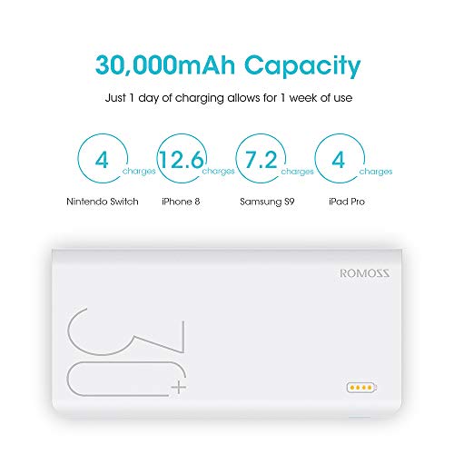 ROMOSS 30000mAh Power Bank Sense 8+, 18W PD USB C Portable Charger with 3 Outputs and 3 Inputs External Battery Pack Cell Phone Charger Battery Compatible with iPhone 13 12, Samsung Galaxy iPad and More