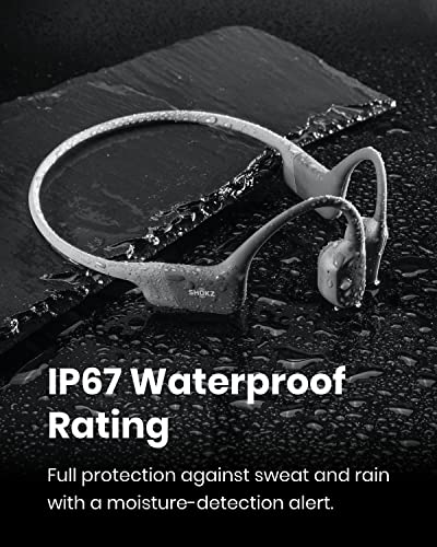 Open-Ear Comfort - OpenRun’s innovative design features a featherweight, wraparound frame and wireless, open-ear fit for comfortable, earbud-free listening. Includes Shokz headband.,Safety & Connection - Stay aware and motivated through any workout with our 8th generation bone conduction technology. OpenRun delivers quality audio while leaving your eardrums open to surroundings for ultimate safety.,IP67 Waterproof Rated - Completely sweat and waterproof for workouts, fitness and running. Moisture detection alert included for safe charging. (Not suitable for swimming.),8 Hours of Music & Calls - Enjoy eight continuous hours of music, calls and podcasts with our Bluetooth headphones. OpenRun also features a 10-minute quick charge for up to 1.5 hours of battery life. (Quick Charge Version of Aftershokz Aeropex),Outstanding Sound Quality - Bone conduction technology uses vibrations to transmit sound through your cheekbone directly to your inner ear for a premium audio experience.