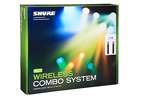 Shure BLX288/PG58 Wireless Microphone System for Two Performers with BLX88 Dual Channel Receiver and Two BLX2 Handheld Transmitters with PG58 Mic Capsules for Lead and Backup Vocals - H9 Band