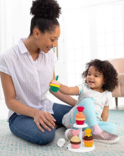 Little bakers will love learning shapes and colors with this sweet build-your-own cupcake set. The stackable designs let kids create yummy pretend treats while encouraging fine motor skills and more. Fill the magic pastry bag with ice-cold water, squeeze onto toppings and watch them change color!.